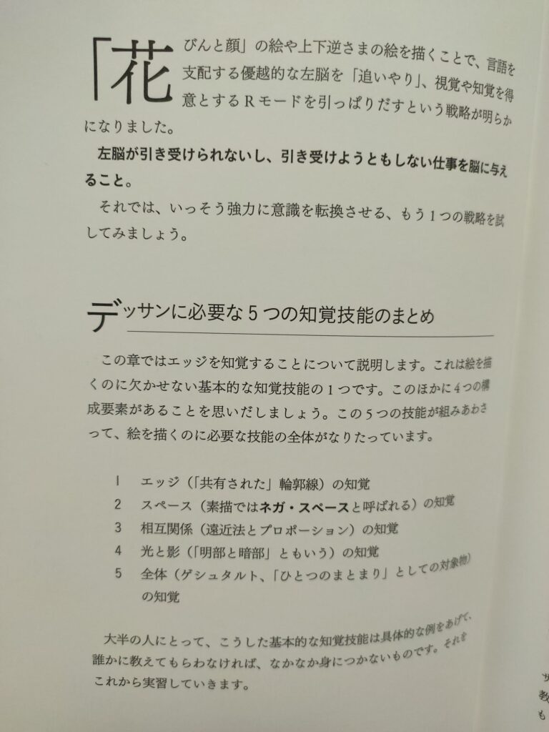そしてこの、左脳から右脳に切り替えて見ることに慣れていくと、だんだん自分の意志でスムーズに切り替えていくことができるようになり、画家の目を持つことへつながっていくみたいです。
